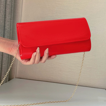 Ví Đám Cưới Ăn Tối Túi Buổi Tối Có Dây Xích Thời Trang Túi Xách Tay Cao Cấp Màu Đỏ Bằng Da Bóng Ví Cầm Tay Buổi Tối Túi Đeo Vai Có Nắp Phong Bì